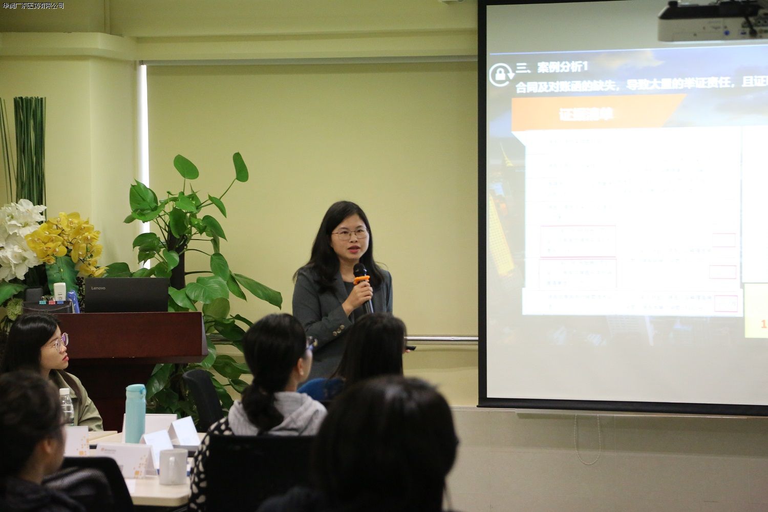 本次培訓(xùn)第二環(huán)節(jié),由法律事務(wù)部蕭賢麗結(jié)合廣東公司及下屬子公司兩起經(jīng)典訴訟案例,對(duì)合同管理過(guò)程中的風(fēng)險(xiǎn)評(píng)估、相關(guān)證據(jù)留存等重要性進(jìn)行拓展講解,進(jìn)一步明確了合同管理要求,增強(qiáng)各級(jí)管理人員的合同管理和風(fēng)險(xiǎn)防范意識(shí)。同時(shí)聚焦2020年合同管理優(yōu)化計(jì)劃,以溝通討論的形式為大家答疑解惑,尋求合同管理效能最大化。